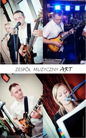 Zespół Muzyczny ART. Oprawa muzyczna imprez okolicznościowych: wesel, festynów, zabaw, bali, dancingów, studniówek. Zespół 4-osobowy. Dwa wokale ŻEŃSKIE + wokal MĘSKI, INSTRUMENTY: Gitara elektryczna, gitara akustyczna, gitara basowa, instrumenty klawiszowe, Gramy w całej POLSCE. Posiadamy własny transport oraz nagłośnienie i oświetlenie, także efekty typu dym oraz bańki mydlane. Zapraszamy na naszą stronę internetową, można na niej odnaleźć wszystko na nasz temat, opis sprzętu na jakim gramy, nasz repertuar, demo w postaci plików audio oraz video.